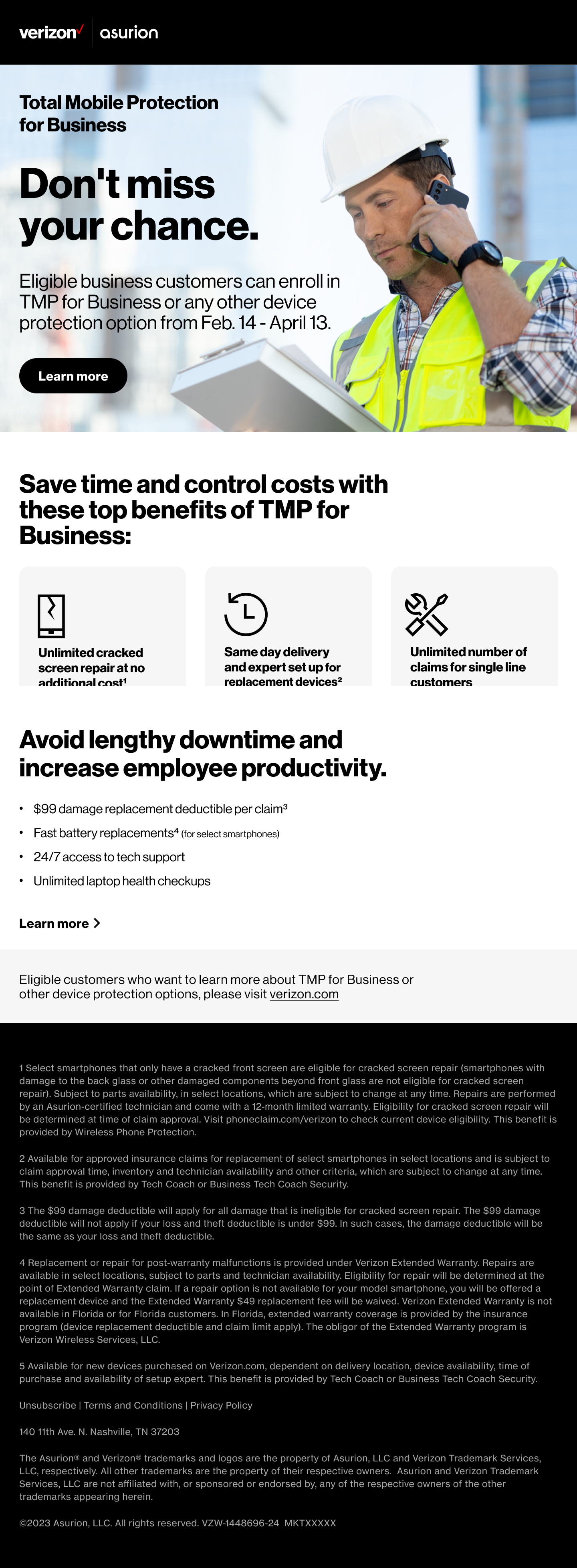 Within Asurion, the Partner Marketing Team diligently crafted and promoted content for Verizon's tech insurance. It encompassed comprehensive marketing materials tailored to highlight Verizon's diverse protection programs, including Verizon Mobile Protect, Verizon Total Mobile Protection for Business, and Verizon Home Device Protection. These materials were designed to cater to consumer and business audiences, and internally to effectively boost sales of the programs.